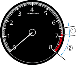 При нахождении стрелки тахометра в ЗАШТРИХОВАННОЙ ЗОНЕ водителю необходимо переключить передачу, чтобы не допустить перемещения стрелки в КРАСНУЮ ЗОНУ.