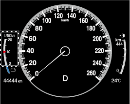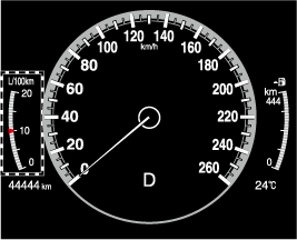 На дисплей выводится величина мгновенного путевого расхода топлива, которая рассчитывается, исходя из текущего расхода топлива и пройденного автомобилем расстояния.