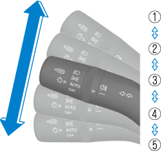 Нажмите на рычаг вниз (при повороте налево) или вверх (при повороте направо) до фиксируемого положения. Рычаг автоматически вернётся в исходное положение, и указатели поворота выключатся при выходе автомобиля из поворота.