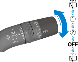 Чтобы включить стеклоочиститель, поверните переключатель стеклоочистителя/омывателя заднего стекла.