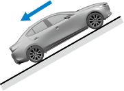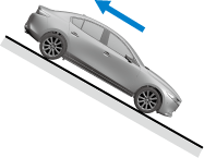Функция AUTOHOLD отключается, когда рычаг селектора / рычаг переключения передач переводится в положение R (задний ход), если автомобиль находится на горизонтальной поверхности, на подъёме или на спуске (как показано ниже).