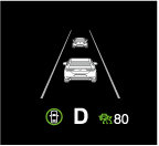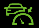 Если при движении с постоянной скоростью было обнаружено впереди идущее транспортное средство, на дисплее загорается индикатор транспортного средства, и система круиз-контроля переходит в режим контроля дистанции. Если система больше не видит впереди идущее транспортное средство, индикатор транспортного средства выключается, и система переходит в режим движения с постоянной скоростью.