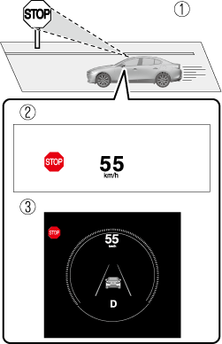 Система TSR не функционирует в некоторых странах и регионах. Для получения информации о странах и регионах, в которых действует система, рекомендуется обращаться на сервисную станцию официального дилера Mazda.