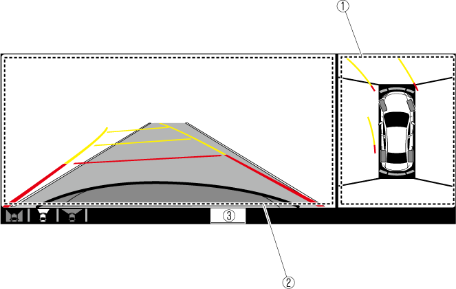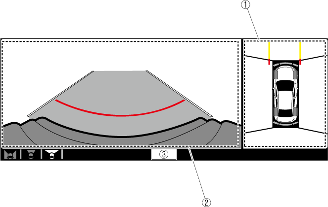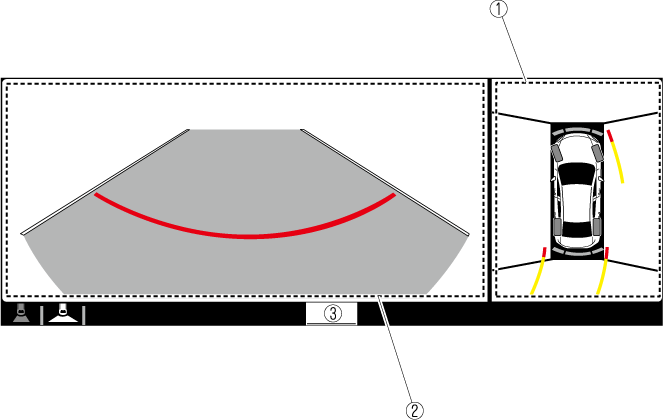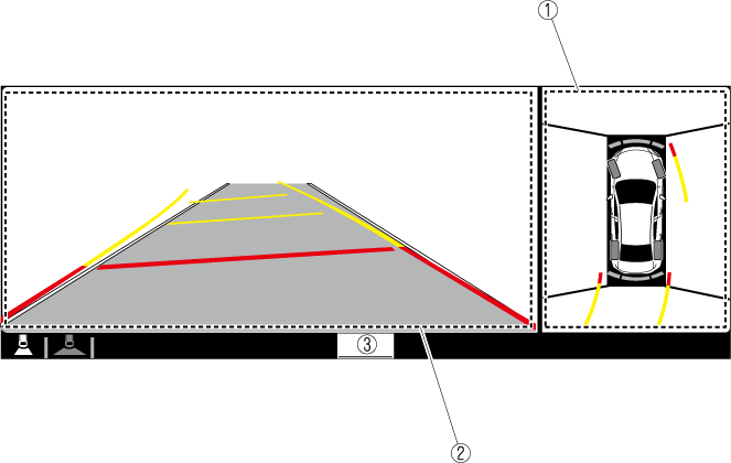 Вывод на дисплей зоны вокруг автомобиля и сзади автомобиля (широкоугольное изображение).