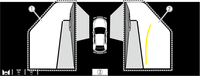 Вывод на дисплей изображения зоны с левой и с правой стороны автомобиля.