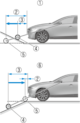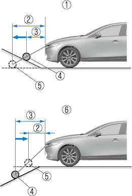 Между поверхностью дороги, показанной на экране, и реальной поверхностью дороги может иметься некоторая погрешность. Погрешность в воспринимаемом расстоянии может привести к дорожно-транспортному происшествию, поэтому учитывайте следующие условия, которые легко приводят к ошибкам при восприятии расстояния.