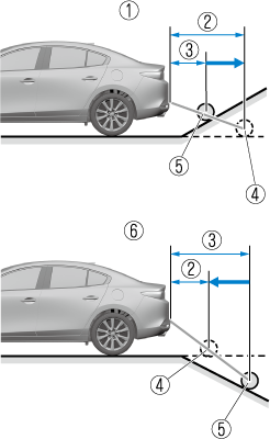 Подъём или спуск на дороге спереди или сзади автомобиля