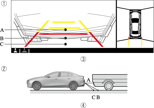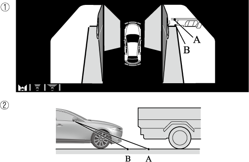 Поскольку разметочные линии переднего края автомобиля (камера бокового вида) или дистанционные линии (камера заднего вида) отображаются для плоской поверхности, то расстояние до трёхмерного объекта, отображаемого на экране, отличается от реального расстояния.