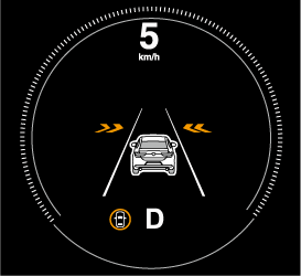Если существует вероятность столкновения с приближающимся транспортным средством, то система отображает предупреждающую сигнализацию (жёлтые стрелки) на следующих дисплеях. Также срабатывает звуковой сигнализатор.