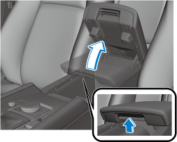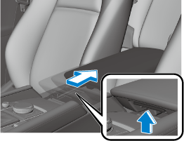 Чтобы сдвинуть крышку вещевого отделения в консоли, потяните рукоятку и переместите крышку назад.
