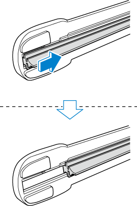 Вставьте конец новой чистящей ленты в паз держателя ленты и перемещайте, пока она не упрётся в конец держателя ленты.