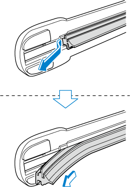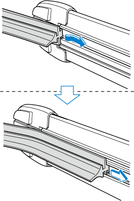 Без необходимости не изгибайте чистящую ленту при её замене. В противном случае металлический элемент жёсткости в чистящей ленте может деформироваться, что отрицательно скажется на эффективности работы очистителя ветрового стекла.