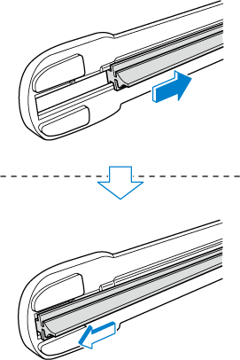 Потянув чистящую ленту в направлении стрелки, сдвиньте её в положение, в котором будет полностью виден паз держателя ленты, а затем сдвиньте конец чистящей ленты в противоположную сторону.