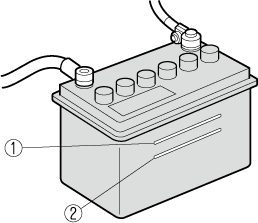 Проверяйте уровень электролита не реже одного раза в неделю. Если уровень низкий, снимите пробки и долейте достаточное количество дистиллированной воды, чтобы уровень электролита располагался между метками верхнего и нижнего уровня (см. рисунок).
