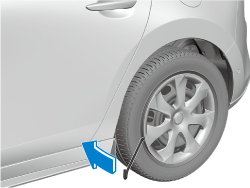 Установите домкрат под опорное место на кузове автомобиля, ближайшее к заменяемому колесу, расположив головку домкрата непосредственно под опорным местом.