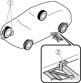 Замена повреждённого колеса без использования противооткатных упоров представляет опасность, поскольку автомобиль может сместиться и упасть с домкрата, даже если рычаг переключения передач установлен в положение 1-й передачи или передачи заднего хода, или рычаг селектора установлен в положение Р (стоянка). Падение автомобиля с домкрата может стать причиной несчастного случая.