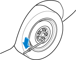 Ослабьте затяжку колёсных гаек, повернув их на один оборот против часовой стрелки, но не отворачивайте их полностью до тех пор, пока колесо не будет поднято над землёй.